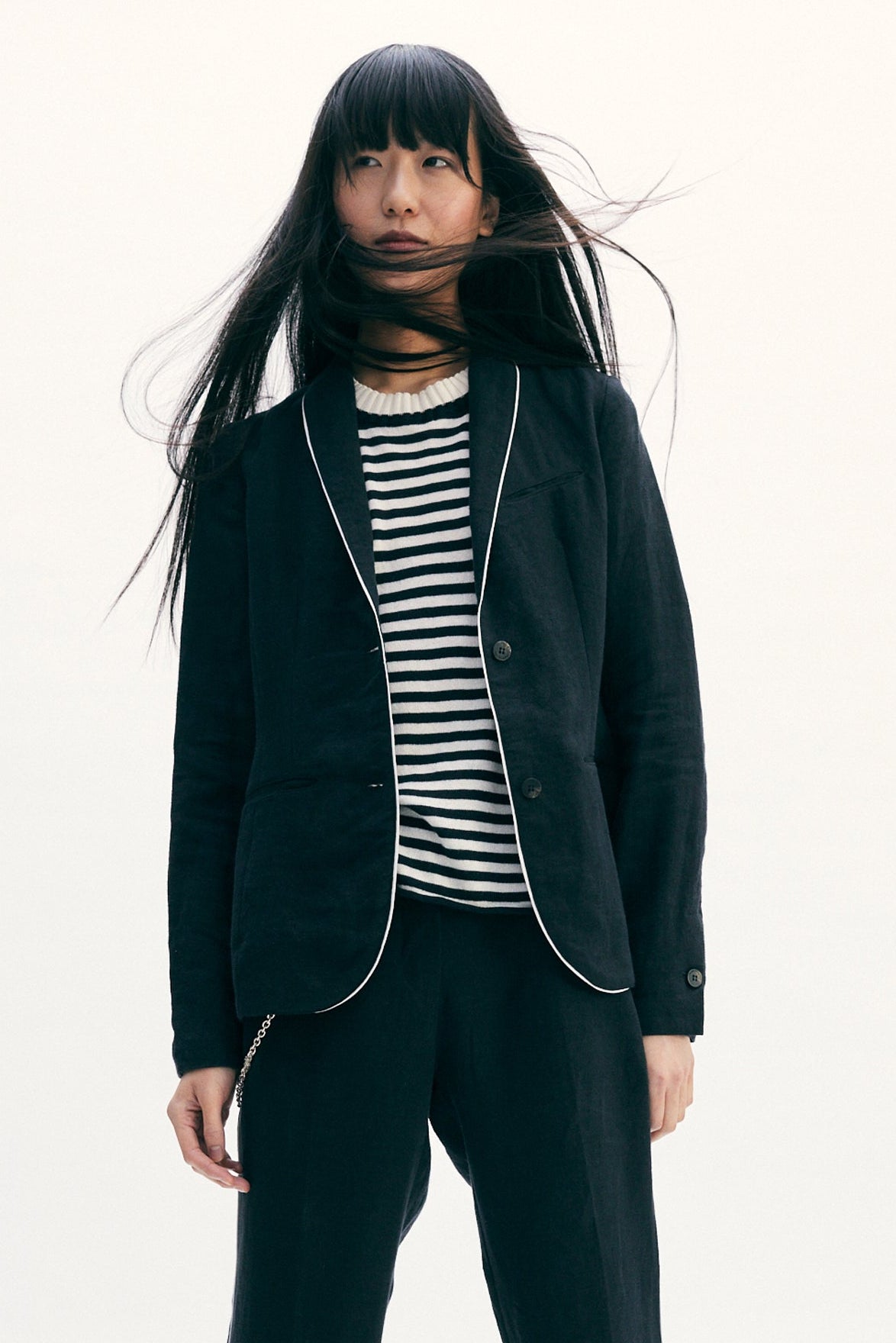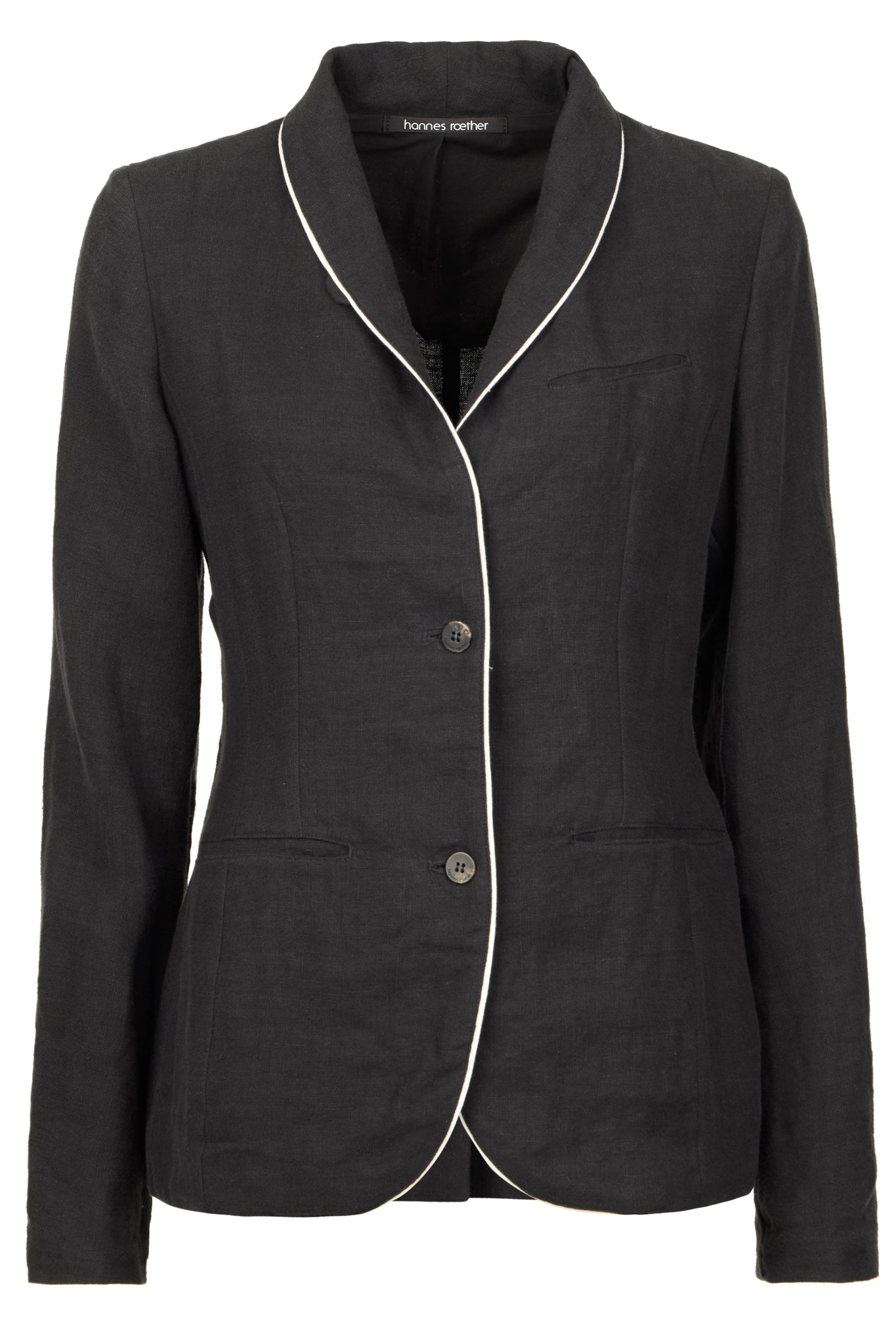• klassischer Reverskragen mit Kontrastpaspelierung