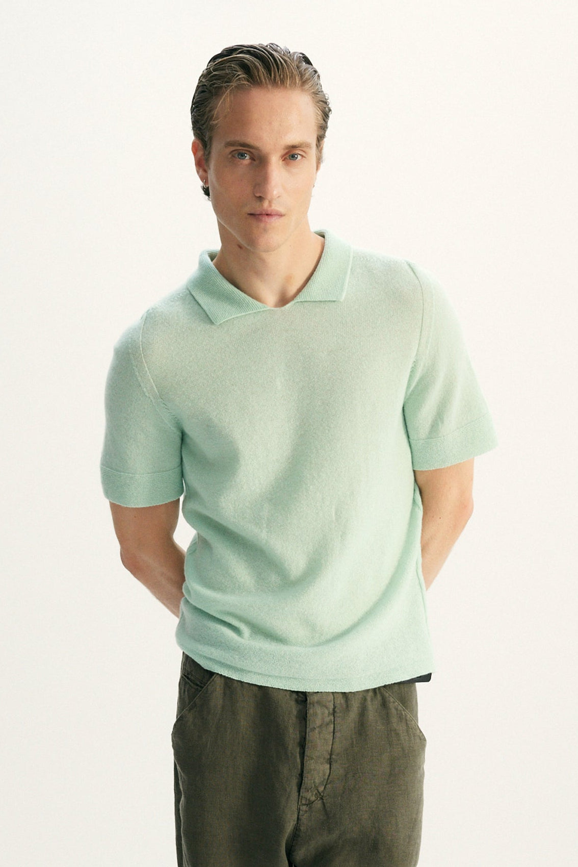 • Klassischer Polokragen ohne Knopfleiste