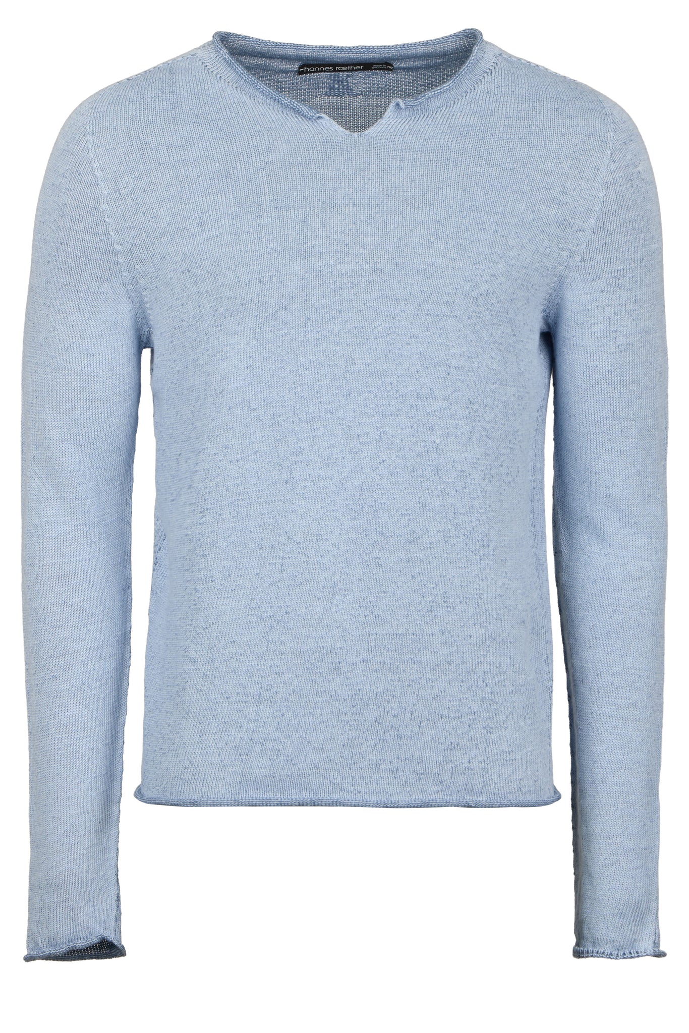 • Klassischer Rundhalsausschnitt mit Schlitz vorne und Rollkante